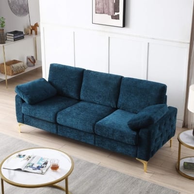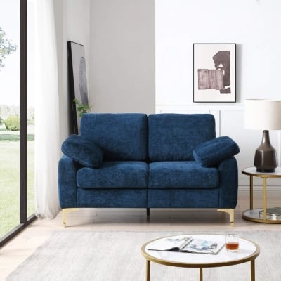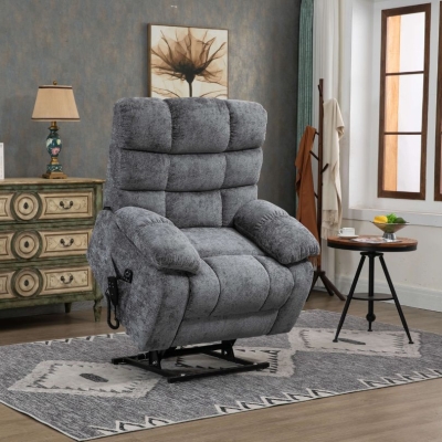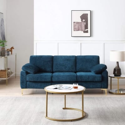 Adjustable Metal Frame Blue Modern Cotton Recliner