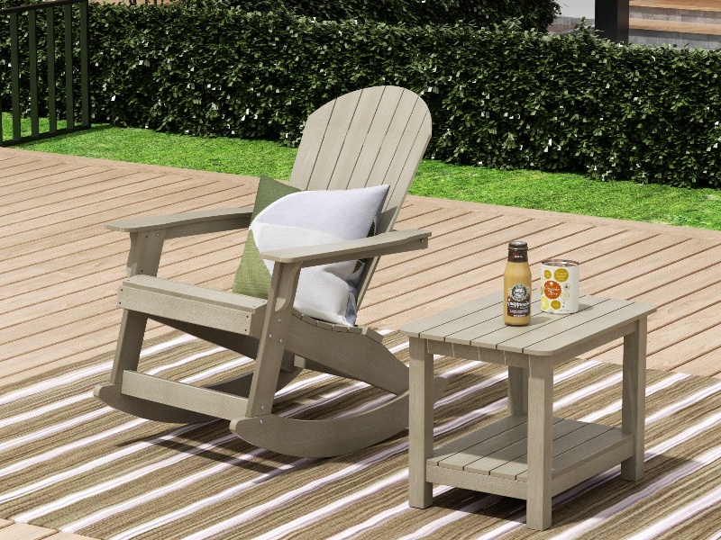 Outdoor Folding Poly Adirondack Chair & Square Fire Pit Table Sets